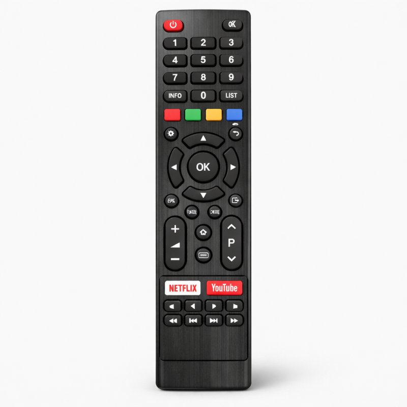 Kvalitetan daljinski upravljač namenjen za AIWA LED Smart televizore pruža jednostavno i brzo upravljanje svim osnovnim i Smart funkcijama. Zahvaljujući preglednom rasporedu tastera omogućava lako korišćenje menija, kanala, zvuka i popularnih aplikacija kao što su Netflix i YouTube.